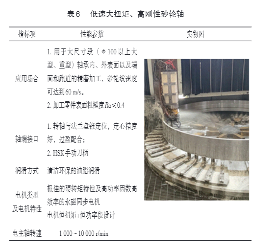 軸承行業(yè)中,常根據(jù)主軸的功能進行分類,一般情況分為砂輪軸、恒扭矩工件軸、砂輪修整器用軸 3 大類。其中,砂輪軸常見有 2 種:內(nèi)表面磨削電主軸(包含外內(nèi)溝道)、外表面磨削 (包含內(nèi)外溝道) 電主軸。將加工風(fēng)電、盾構(gòu)機等重大型軸承所需的立磨電主軸集內(nèi)表面磨削、外表面磨削為一體,故將其單獨化為一類。表 3~6 對以上各類主軸的應(yīng)用場合及結(jié)構(gòu)設(shè)計特點逐一介紹。